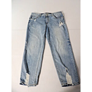 Willow + Root Jeans Midrise Girlfirend Sz 32 Distressed Cropped Blue Denim Stret