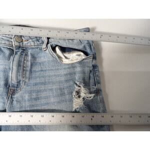 Willow + Root Jeans Midrise Girlfirend Sz 32 Distressed Cropped Blue Denim Stretch