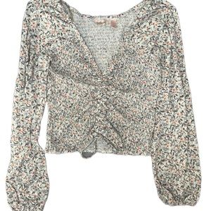 Willow & Root Long Sleeve Floral Crop Top with Ruching Size L