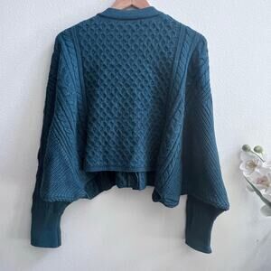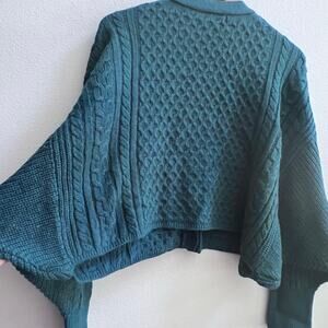Willow & Root Wool Blend Green V-Neck Chunky Knitted Cardigan Sweater Women's M