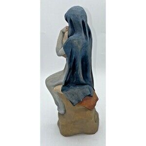 The figure is in very good condition, there is minor wear on Mary's arm. It is signed by Susan Lordi. The Willow Tree The Christmas Story Mary & Baby Jesus Figurine, signed by Susan Lordi, is a large, modern-style painted resin figurine depicting the Nativity scene. Manufactured in 2005 as part of the Willow Tree collection, this rustic-colored figurine measures 11.5" and weighs 2 lbs. With its multicolor design and symbolic representation of Mary and Baby Jesus, this figurine is an original piece that adds a touch of faith and tradition to any room in the home during the Christmas season.