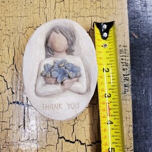 Never used "Thank You" trinket box with removable lid that has a girl holding flowers by Willow Tree. Inside are the words Appreciate Your Kindness. Thank you written underneath on bottom of box. Refer to pics. Smoke free home.