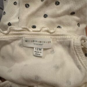 Willow + Whimsy Cream Baby Onesie with Black Dots size 12M