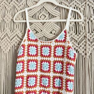 Beautiful boho-inspired crochet dress from Willow & Wind featuring multicolored patchwork detail. Lightweight, breathable, and perfect for layering through the summer-to-fall transition. Unique and eye-catching with great texture and color.