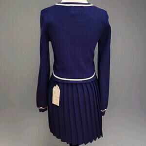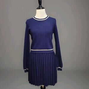 Willow & Wind Navy White Trim Sweater & Pleated Skirt Sz Medium