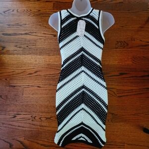 ☆ Willow & Wind Chevron Knit Dress ☆ New With Tags ☆ Size: Small ☆ Color: Black / Ivory ☆ 60% Cotton, 40% Acrylic ☆ Chevron pattern ☆ Attached slip ☆ 40" Length from shoulder ☆ 18" P2P Stylish black and white chevron knit dress perfect for any occasion. Comfortable and chic, this dress is a must-have for your wardrobe.