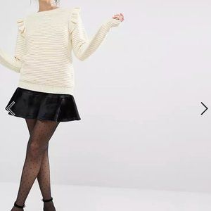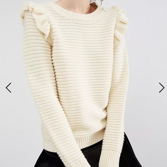Willow and Paige Ribbed Sweater With Shoulder Ruffle