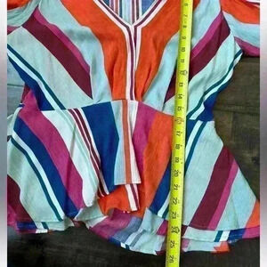 Willow and Root Ruffle Striped Top 3/4 Length Sleeves Cinched Waist Boho Size M
