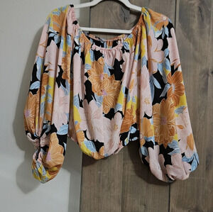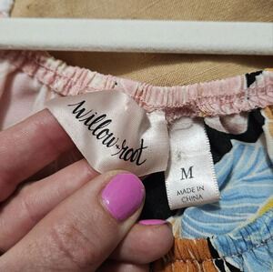 Willow and Root from buckle off shoulder floral sheer top. Side medium
