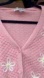 Charming pink cardigan with daisy embroidery. Soft knit fabric. Ideal for layering.