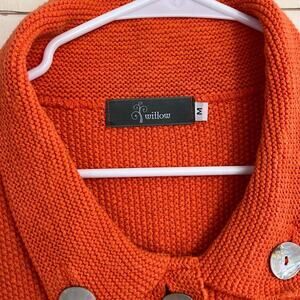 Willow size medium cotton cardigan in orange. Big buttons down the front. Great condition. Measures 23” from armpit to armpit and 23” long.