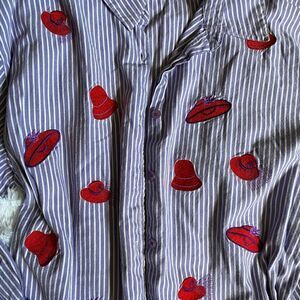 Willow Ridge Red Hat Embroidered Button Down Top 3X