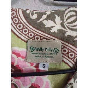 Willy Dilly Girls Dress 6 Green Pink Floral Wrap Sleeveless A Line Ruffle Hem
