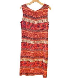 Willy’s New York Sz 10/12* Orange Rust Bali Tropical Sleeveless Vtg Tank Dress