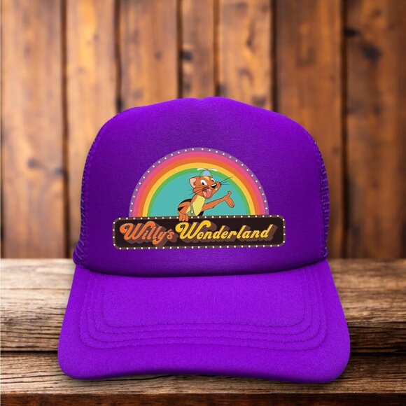 Willy's Wonderland Mens Trucker Hat Purple Nicholas Cage Horror Movie Ball Cap
