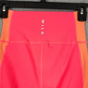 Wilo The Label Leggings Women XS Pink Peach Ribbed Contrast 7/8 Yoga Active READ