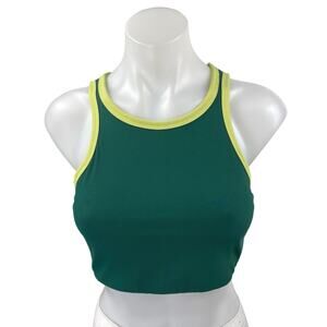Wilo Women's Green Rib Knit Sleeveless Racerback Sports Bra Crop Tank Top Size M
