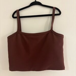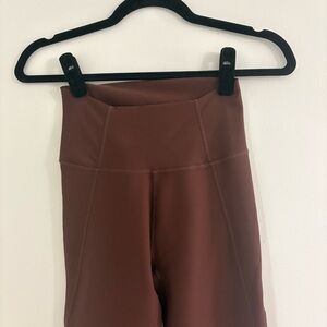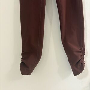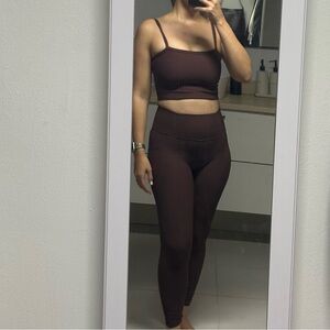 Chocolate brown workout set, corset bra top and ruched side leggings. Both size small, only worn once.