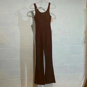 Wilo the Label Women Flare Jumpsuit Chocolate Athletic Travel Workout Loungewear Ribbed