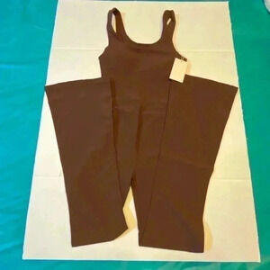 Wilo the Label Women Flare Jumpsuit Chocolate Athletic Travel Workout Loungewear Ribbed