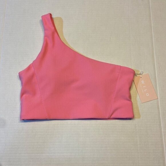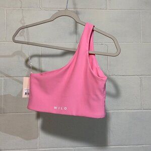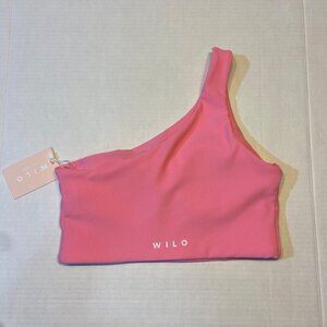 Wilo the Label Women One Shoulder Sports Bra MEDIUM Pink Yoga Athletic Workout