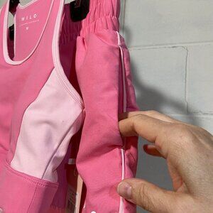 Wilo the Label Women Racerback Sport Bra/2 in 1 Short Set Pink Athletic Running