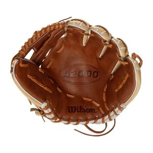 Premium brown leather glove. Red and white detailing. Ideal for baseball enthusiasts.