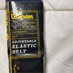 Wilson adjustable elastic belt in navy. Size Adult (adjustable). Features an adjustable design with a sturdy buckle. Perfect for baseball or softball. New condition.