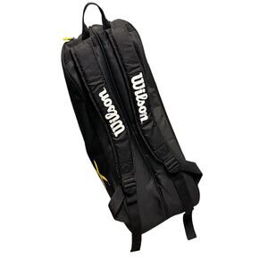 Wilson BLX Tour Super Six Pro tennis bag in black and yellow. Spacious and durable, designed for recreational and competitive players.