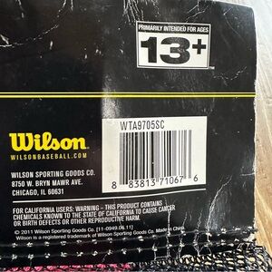 Red and black colored large team gear duffel bag for baseball or softball equipment from Wilson. Style code WTA9705SC. Size 36”x15”x15”. Large zippered main compartment. Long zippered side pocket. Drop handles and grip handles on ends. Comes in original mesh packaging bag.