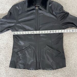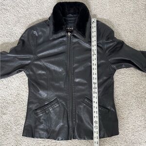 Wilson Black Leather Jacket with Removable Faux Fur Collar Y2K 90’s