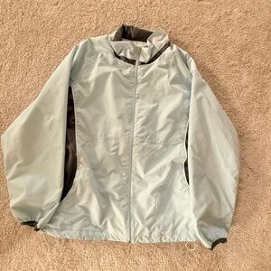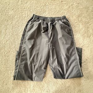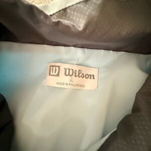 Stylish Wilson track pants and jacket set. Features a sleek gray jacket with black accents. Comfortable gray pants with elastic waistband. Perfect for workouts or casual wear.