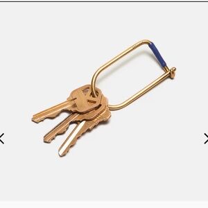 Brass key ring with blue enamel. Secure single-wire construction. Compact, light, and durable.