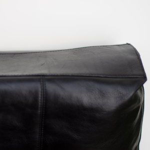 Clean black fabric interior and stiff black leather tote. Sack has a sag wrinkle on the back, but I am currently re-shaping to stiffen the bag back up.