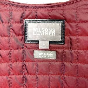 Style Description: Blazer style leather jacket | Four button front closure | Notched lapel collar | Two open pockets on the front hips | Quilted Thinsulate vest liner (see “Condition” below for flaws details)