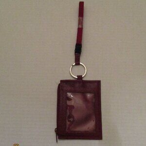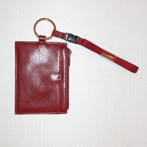 Wilson Leather Lanyard, ID Holder, Red Leather, Key ring inside pocket, NWOT