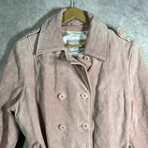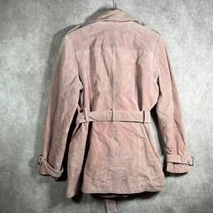 Wilson Leather Maxima Jacket Womens Large Pink Double Breasted Belted Mob Wives