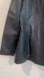 This black leather jacket with blue lining looks like new and has buttons to fasten and a lapel collar