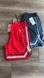 Vibrant red shorts with striking black and white stripe details. Perfect for active wear. Elastic waistband for comfort.