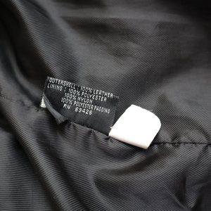 Large genuine leather jacket for men. Not perfect but in great condition. Carefully inspected and photographed the flaws. Please see the photos. It protects you from the high winds of winter.