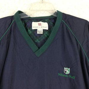 Wilson Mens Windbreaker Jacket Golf Pullover Blue Nylon Embroidered V Neck XL