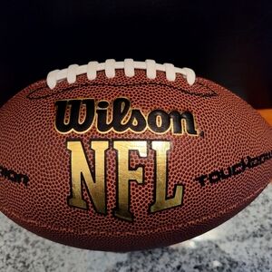 Wilson NFL football with classic brown texture and white laces. Perfect for sports enthusiasts. Wilson NFL Football - Wilson NFL Bronze Series Junior Size Football. Model WTF 1694.