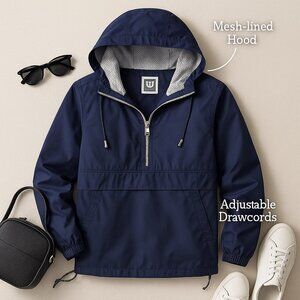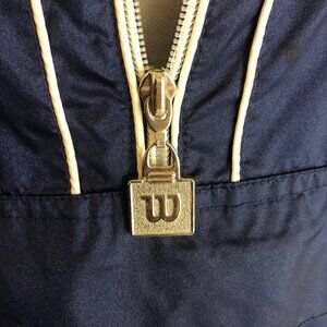 Step into sporty nostalgia with this Wilson navy hooded pullover windbreaker. With its mesh-lined hood, bold Wilson zipper pull, and roomy pullover design, it channels Y2K retro streetwear vibes while staying functional and timeless. Perfect for layering, travel, or a casual day out.