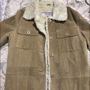Tan Suede Jacket with fur collar