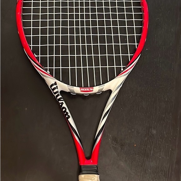 Wilson racket with a striking red and white frame. Precision-engineered for performance.