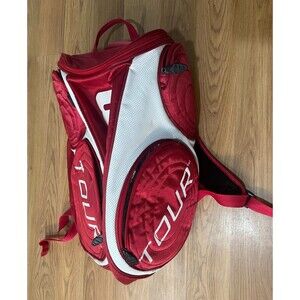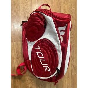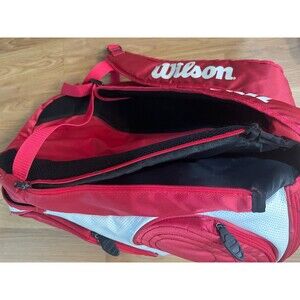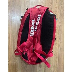 Wilson Tour Large Tennis / Racquet Sports Backpack. Can hold two (2) tennis racquets easy and is pre-owned but in great shape. Color is red, white and black. Great for anyone in need of a bag when they play or just to protect their frames when storing them.