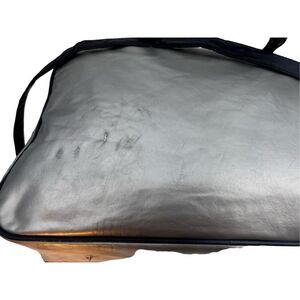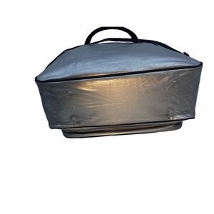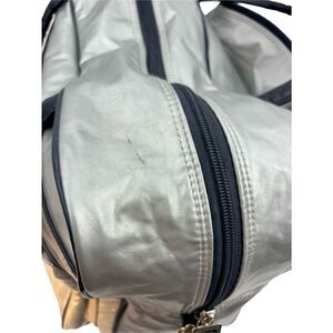Wilson vintage silver bag with navy blue handle and shoulder strap