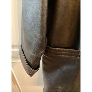 In good condition - Lined inside with a snap pocket and shoulder pads (total 80s) exterior is in good condition minor wear on bottom not really noticeable see pics - 2 pockets and cuffed arm hems- fabulous vintage jacket