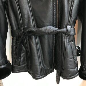 Wilsons Black Fur-lined Leather jacket with hood, M