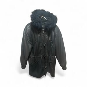 Measurements 22 in pit to pit and 32 in long. No rips or holes. Minor wear and scuffs. Please see ALL pics attached for complete condition. 100 percent leather shell. Any questions feel free to ask directly! Really good looking jacket with all zippers and pockets fully functional.